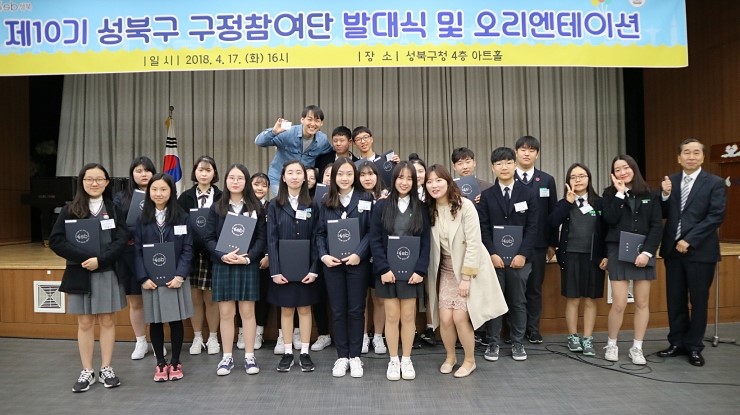 성북구(구청장 김영배)가 ‘2018년 성북구 청소년 구정참여단 발대식 및 오리엔테이션’을 17일 오후 4시, 구청 아트홀에서 개최하고 제10기 성북구 청소년 구정참여단 28명을 위촉했다. 2009년에 처음 조직되어 올해로 10기를 맞이한 ‘성북구 청소...