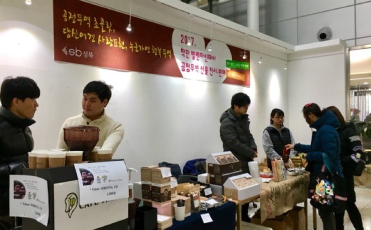 성북구(구청장 김영배)가 설 명절과 사랑하는 사람에게 마음을 전하는 밸런타인데이를 맞아 한국공정무역단체협의회와 함께 ‘2018. 설 명절 및 밸런타인데이 공정무역 선물 전시·판매 행사’를 실시했다. 지난 12일 오전 11시부터 오후 3시까지 성북구청 2층 민...