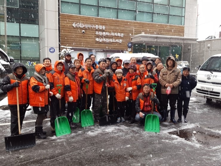 지난 10일 서울 지역에 4㎝를 웃도는 눈이 내리면서 도심 곳곳의 교통이 통제되는 등 불편이 잇따르는 가운데 성북구 종암동에서 펼쳐진 번개 제설에 대한 미담이 눈길을 끌고 있다. 번개 제설을 펼친 주인공은 종암동 주민30여 명. 고지대 등 취약지역이 많은 지역 특...