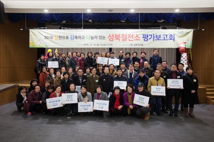 성북구(구청장 김영배)가 지난 19일 오후 구청 다목적홀에서 ‘2017년 성북절전소 평가보고회’를 개최하고 에너지 절약공동체인 ‘성북절전소’의 올 한 해 활동을 되돌아봤다. 이날 보고회는 각 절전소장, 지역주민, 환경단체, 관계공무원, 등 100여 명이 참석...