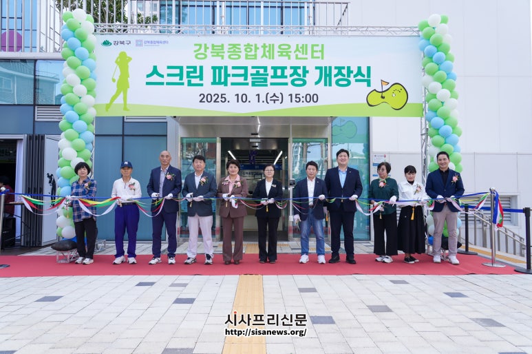 이순희 강북구청장, 강북종합체육센터 ‘스크린 파크골프장 개장식’ 참석 ▲스크린 파크골프장 개장식에 참석한 이순희 강북구청장(왼쪽에서 여섯 번째)과 내빈이 테이프 커팅식을 진행하고 있다. (시사프리신문=유영일 기자) 이순희 강북구청장이 지난 1...