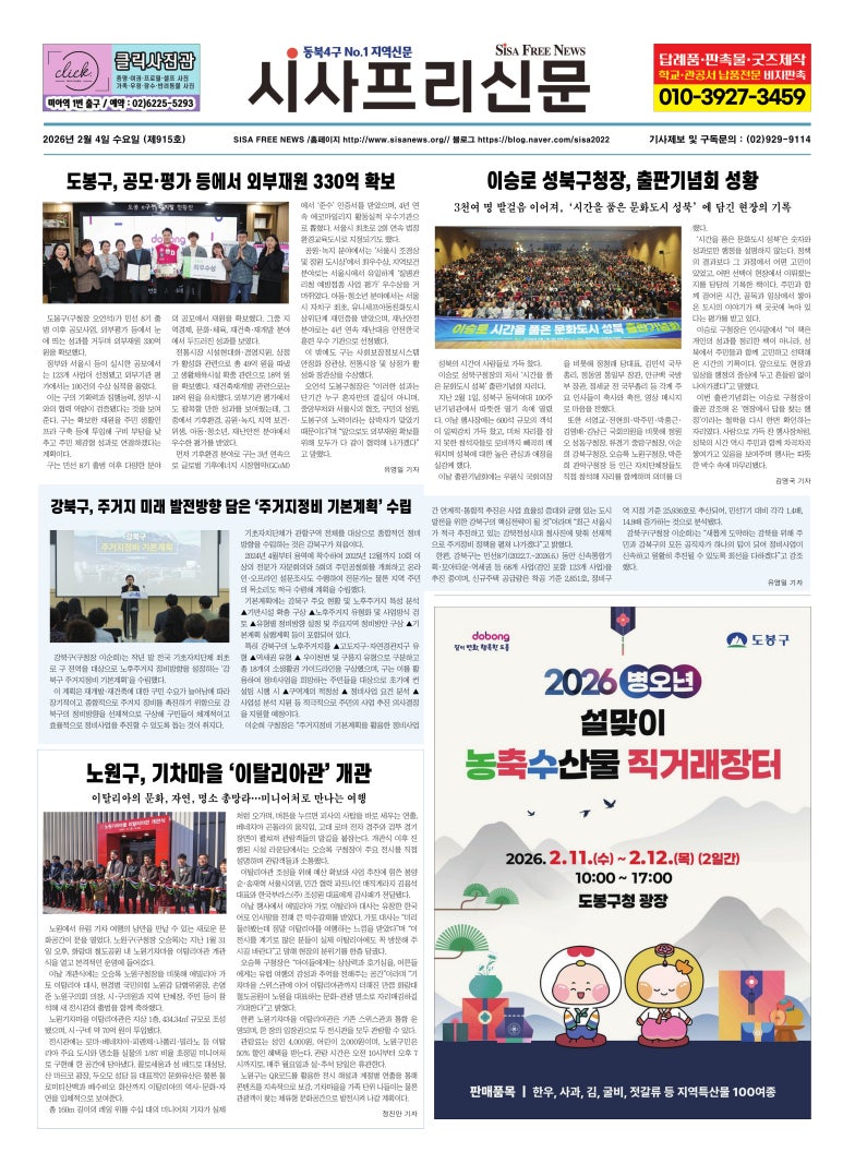 도봉구, 설맞이 도봉사랑·땡겨요 상품권 총 95억 원 발행 도봉사랑상품권 2월 4일 오후 4시, 90억 원 규모 도봉땡겨요상품권 2월 3일 오전 10시, 5억 원 규모 도봉구(구청장 오언석)가 민족 대명절 설을 맞아 90억 원 규모의 도봉사랑상품권...