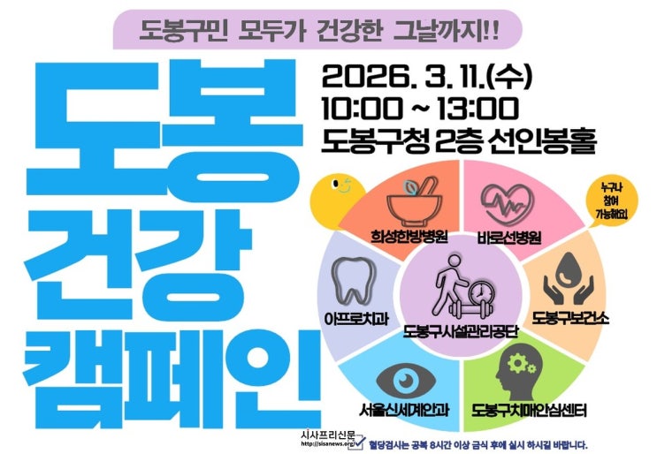 도봉구시설관리공단, 도봉구청서 ‘원스톱 건강검진’ 건강캠페인 치과·안과·한방 등 6개 전문 기관 협력... 구민 누구나 참여 가능 도봉구시설관리공단(이사장 김기수)은 오늘 3월 11일, 구민들의 활기차고 건강한 일상을 지원하기 위해 도봉구청 2층 선인봉홀...