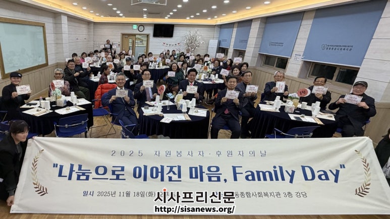 창동종합사회복지관, 자원봉사자·후원자 예우 행사 ‘2025 Family Day’ ▲창동종합사회복지관, 자원봉사자·후원자 예우 행사 ‘2025 Family Day’ 기념사진 (시사프리신문=유영일 기자) 창동종합사회복지관(관장 최영대)은 지난 11월...
