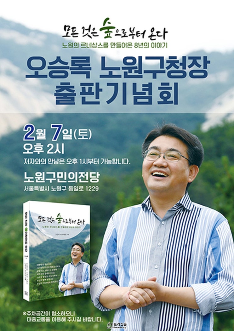 오승록 노원구청장, 『모든 것은 숲으로부터 온다』 출판기념회 주민과 함께한 2920일, 노원 구정의 기록을 책으로 (시사프리신문=정진만 기자) 오승록 노원구청장이 구정 운영의 철학과 변화를 담은 저서 『모든 것은 숲으로부터 온다』 ...