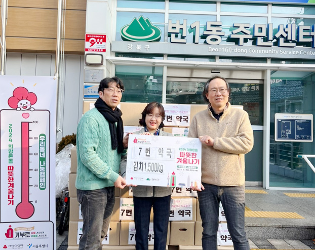 강북구 번1동 ‘7번 약국’, 사랑의 김치 기탁 강북구(이순희 구청장) 번1동에 소재한 ‘7번 약국’ 이중헌 대표가 지난달 28일 사랑의 김치 1,500kg을 번1동주민센터(동장 이혜원)에 기탁했다. 이 대표는 “돌봄이 필요한 이웃들과 사랑의 정을 나누고 싶...