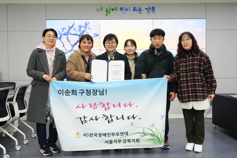 이순희 강북구청장, 발달장애우수정책 최우수단체장상 수상 발달장애인 활동 지원 30→40시간 확대, 일자리 제공 위해 커리어플러스센터 개소 이순희 강북구청장이 지난달 28일 전국장애인부모연대가 주최한 제21회 전국장애인부모활동가대회서 ‘발달장애인 우수정책 최우수지방자...