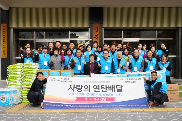 강북구, 한국재능기부協 기부품 전달받아 1320만원 상당 연탄 4500장, 쌀 10kg 30포 등 사랑의 연탄 배달봉사도 함께 강북구(이순희 구청장)가 지난 13일 구청 광장에서 (사)한국재능기부협회로부터 저소득 취약계층을 위한 사랑의 기부물품을 전달받았다. ...