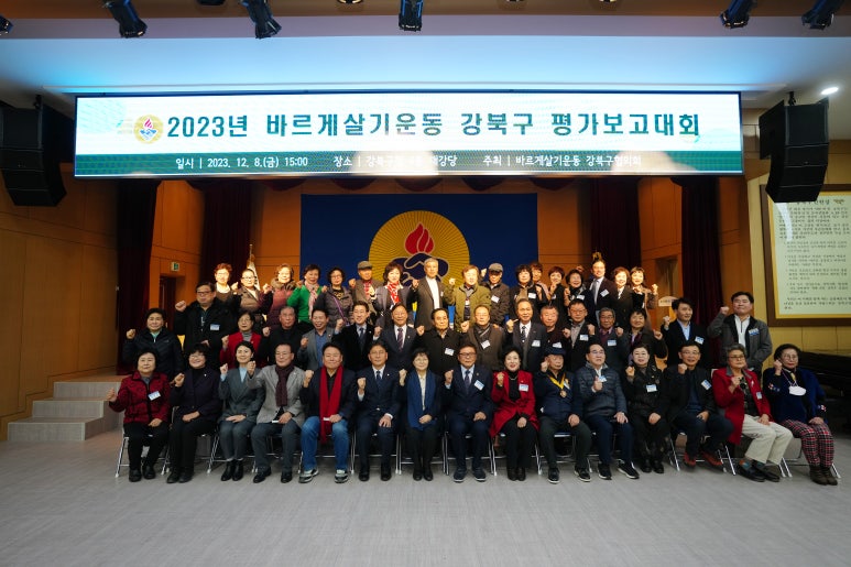 강북구, ‘2023 바르게살기운동 평가보고대회’ 개최 강북구(이순희 구청장)가 지난 8일 구청 대강당에서 열린 ‘2023년 바르게살기운동 강북구협의회 평가보고대회’개최했다. 바르게살기운동 강북구협의회(회장 오상호)는 지역 곳곳에서 기초질서 지키기 운동, 소외계...