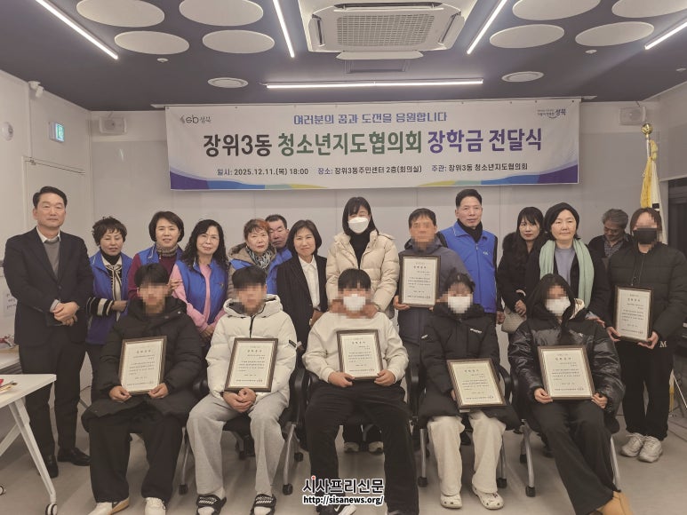 장위3동 청소년지도협의회, 청소년 장학금 지급 ▲장위3동 청소년지도협의회, 청소년 장학금 지급 (시사프리신문=김영국 기자) 장위3동 청소년지도협의회(회장 김연호)에서는 지난 12월 11일 오후 6시 장위3동주민센터 2층에서 청소년 장학금 수여식을...