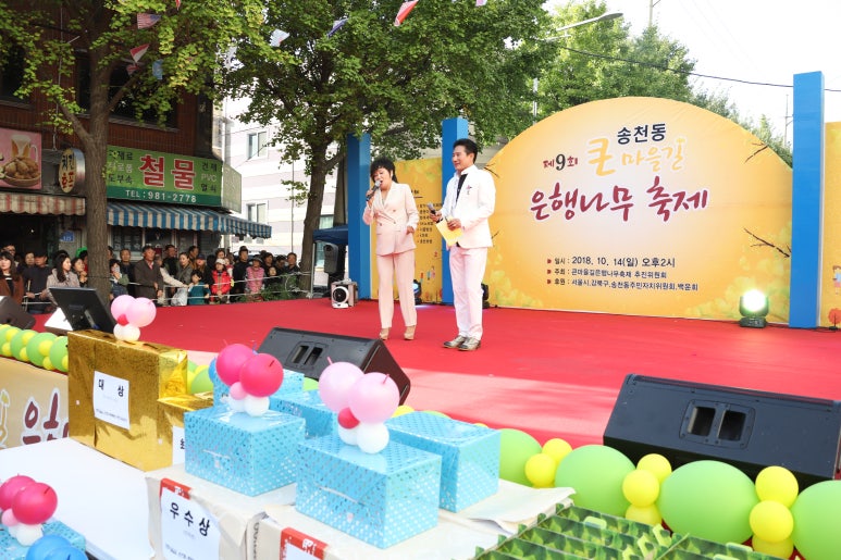강북구 송천동, 큰마을길 은행나무 축제 한마당 열려 주민노래자랑, 초청가수 공연, 먹거리장터 등 풍성한 축제 한마당 열려 강북구(구청장 이순희) 송천동은 코로나19 등으로 멈췄던 지역 최고의 명소 '큰마을길'(솔샘로67길 일대)에서 주민들의 화합과 결속을 다지고 침...