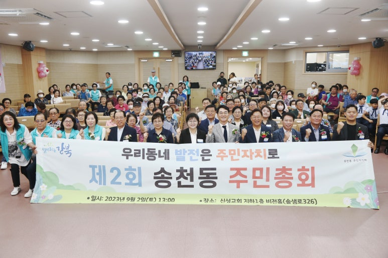 강북구 송천동, 제2회 주민총회 개최 “우리동네 발전은 주민자치로” 송천동 내년도 사업 의결 (시사프리신문=유영일 기자) 강북구(구청장 이순희) 송천동 제2회 주민총회가 “우리동네 발전은 주민자치로”의 슬로건으로 지난 9월 2일 신성교회 지하1층 비전홀...