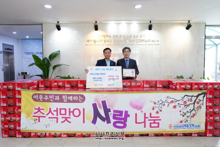 성북구, 여의도순복음성북교회에 감사장 전달 수년 동안 이어진 후원, 작년 쌀에 이어 올해는 라면 150상자 기부 성북구(구청장 이승로)는 지난 10월 2일(목) 여의도순복음성북교회(담임목사 정재명)에 감사장을 전달하며, 꾸준한 지역사회 나눔 실천에 감사를 전했...