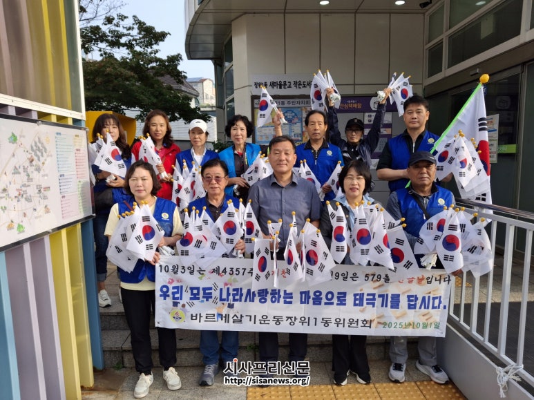 성북구 장위1동 바르게살기위원회, 개천절 앞두고 태극기 나눔 차량용 160여 개·가정용 16여 개 무료 배부 성북구 장위1동 바르게살기운동위원회(회장 이종식)가 지난 10월 2일 장위1동 주민센터 앞에서 지역 주민과 함께 태극기 나눔 행사를 열었다. 이번 행...