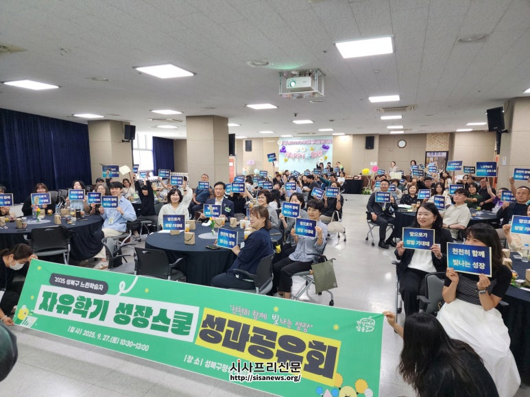 성북구, 느린학습자 자유학기 성장스쿨 성과공유회 개최 자유학기제 느린학습자 맞춤형 프로그램 운영 성과 공유 학생·학부모·교육청 등 80여 명 참석한 현장 열기 성북구(구청장 이승로)가 지난 9월 27일 오전 11시 성북구 평생학습관 대강의실에서 ‘2025 성...